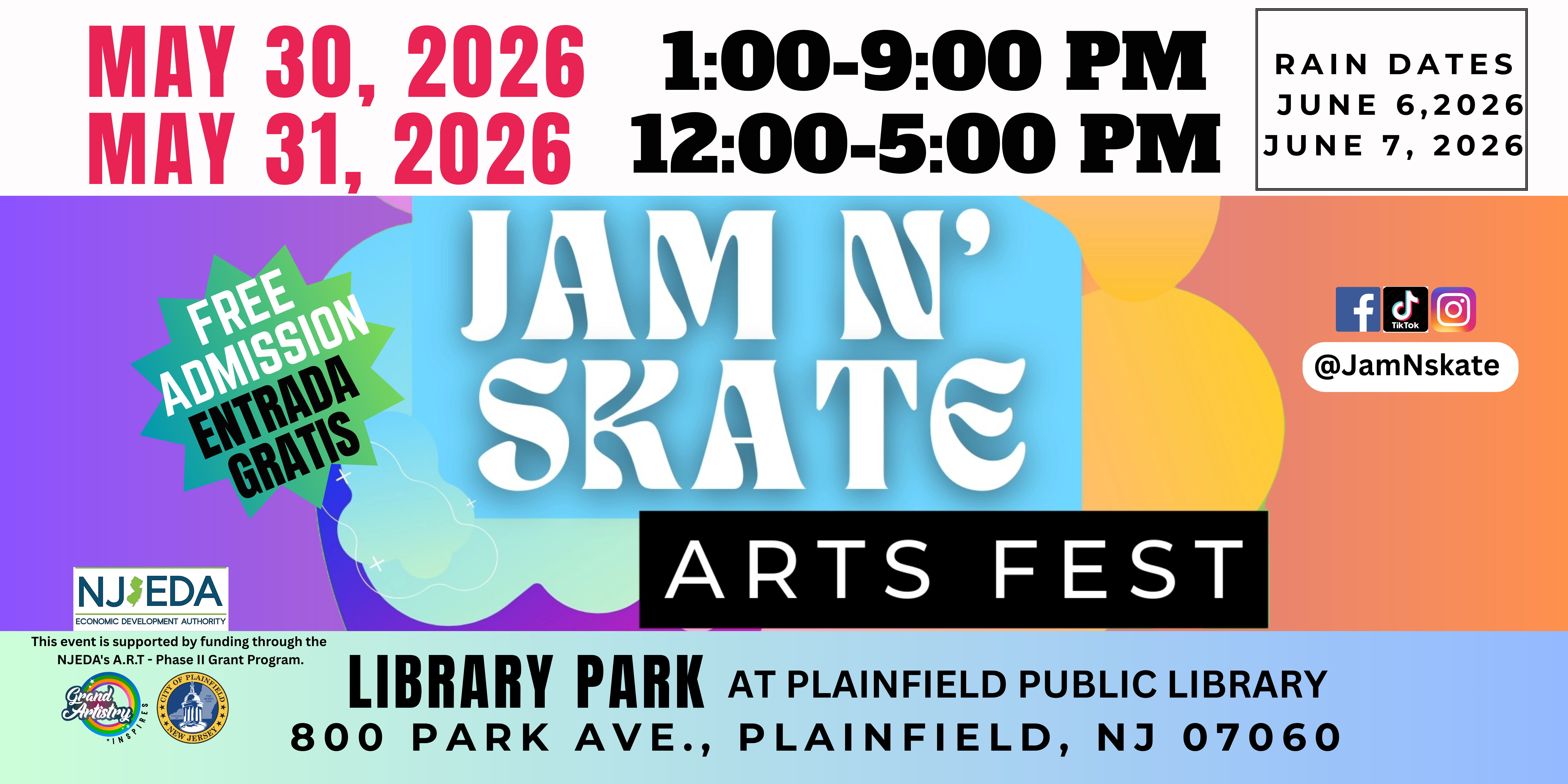 The Jam N Skate Arts Fest 2026 is where live music, movement, and creativity collide. Experience live stage performances, high-energy skate showcases, immersive art, and nonstop vibes—all in one unforgettable 2-day experience. Grab your FREE tickets and be part of the culture.